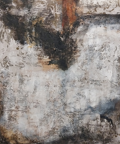 その堆積を経て生まれた密度の濃い油彩画と