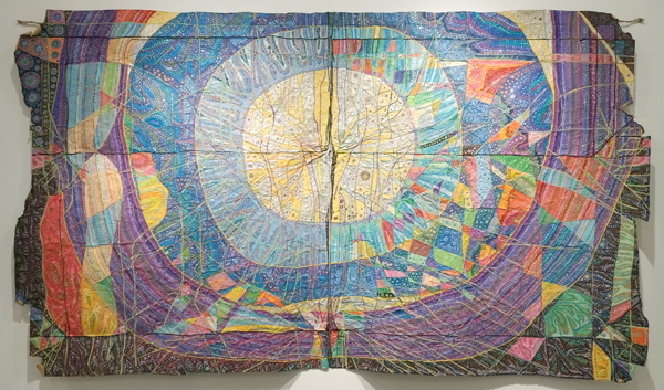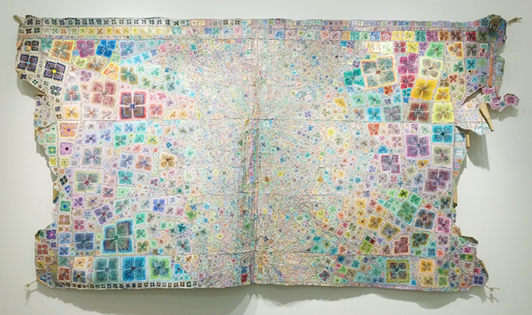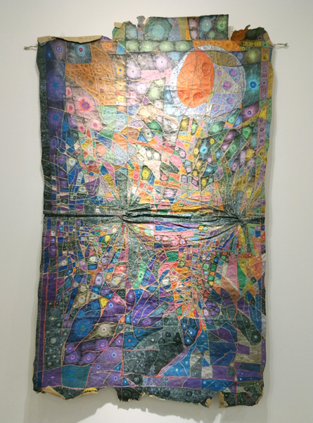 米袋、色鉛筆、ポスカ、ボールペン、鉛筆 154×80cm
