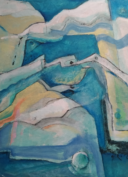 パネル、和紙、油彩ほか 33×24cm(F4)